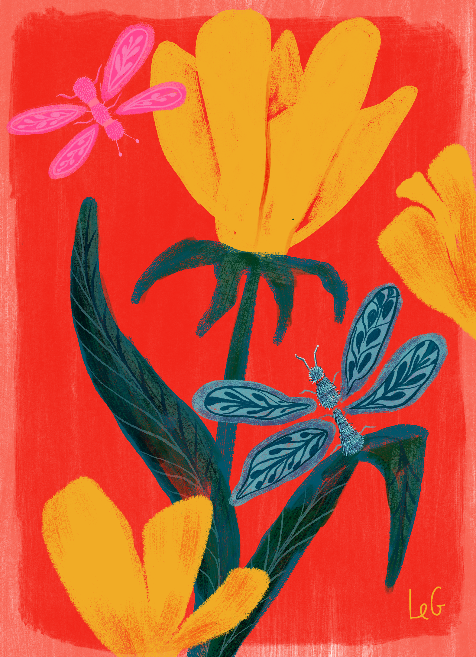 Personal ProjectInspired by the lush landscapes, flora and fauna of my home on Whidbey Island, I created a set of richly hued and characterful postcards. Illustration